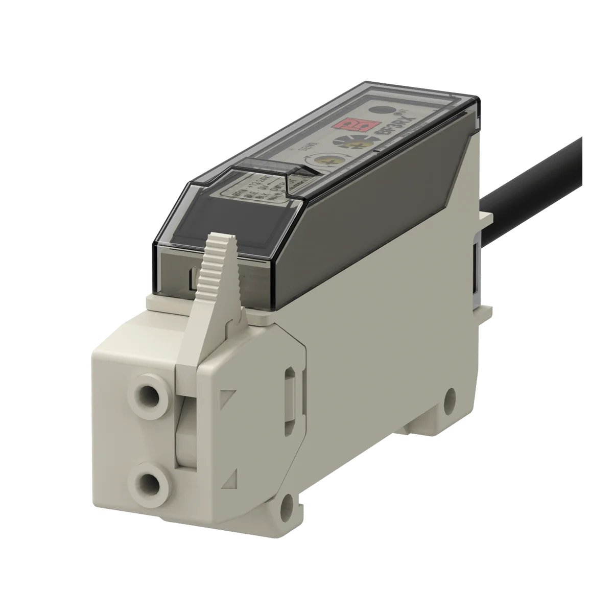Autonics BF3RX is a twin-adjuster fiber optic amplifier designed for precise sensitivity tuning. It features a red LED light source with 1 ms response and NPN switching on 12-24 VDC power.