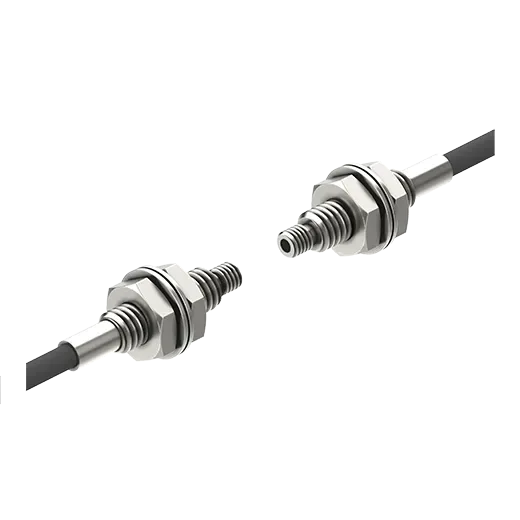 Autonics FT-420-10 is a transmitted-beam (bolt type) fiber optic cable unit specified for 500 mm applications. It detects targets as small as >= 1 mm with an allowable bend radius of R25, and a 2 m cable (free cut) for routing flexibility.