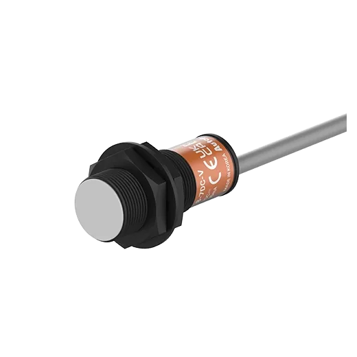 Autonics PRDAT18-7DC-V – a long-distance, spatter-resistant inductive sensor with flush M18 face and 7 mm range. The DC 2-wire NC output simplifies wiring on legacy inputs while maintaining stable operation on 12-24 VDC. An oil-resistant cable and IP67 sealing support harsh machining and welding environments.